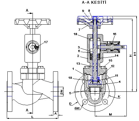 | DN | D | K | A | dxn | L | M | p | H1 | H | Weight (KG) |